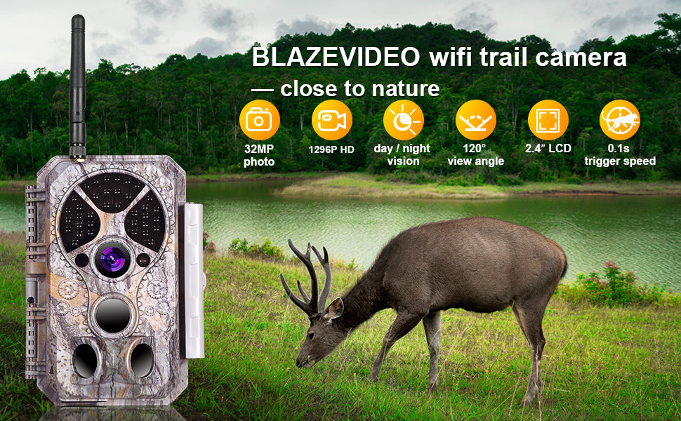 Technologie Wi-Fi et Bluetooth à faible consommation d'énergie, livrée avec une application gratuite et facile à utiliser qui vous permet de commander vos caméras via votre téléphone portable et d'envoyer les images de la caméra de surveillance sur votre téléphone pour les visualiser facilement. Pas de frais mensuels. Aucune télécommande n'est nécessaire. Restez simplement à portée du signal Wi-Fi. Application TrailCam Mobile téléchargeable pour Iphone ou Android.